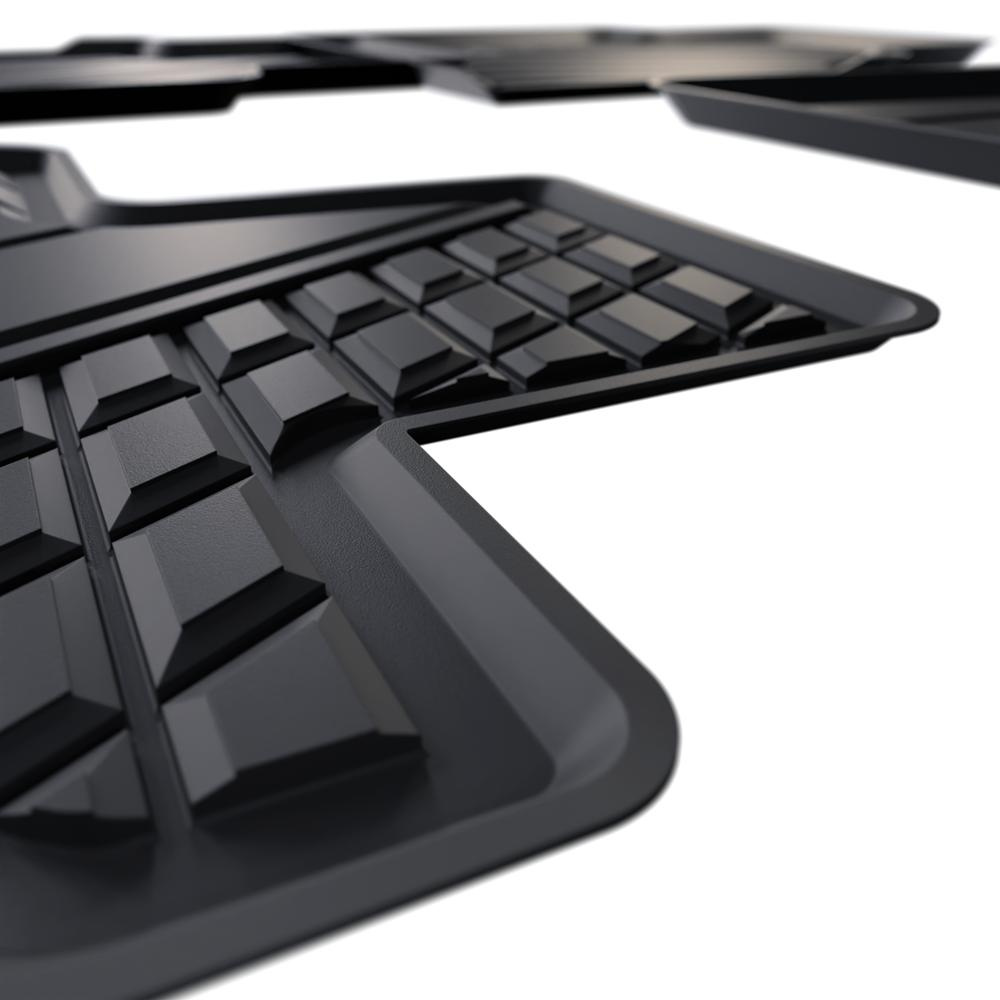 - Covorașele au un design modern, cu un finisaj mat. Fiecare set este personalizat în funcție de modelul și generația mașinii, asigurând o potrivire de 100% cu podeaua vehiculului. Dispozitivele de fixare speciale sunt, de asemenea, incluse dacă sunt prezente în modelul concret de mașină.