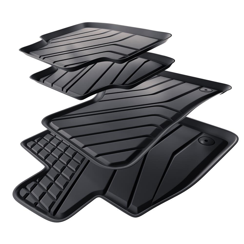 - Covorașele au un design modern, cu un finisaj mat. Fiecare set este personalizat în funcție de modelul și generația mașinii, asigurând o potrivire de 100% cu podeaua vehiculului. Dispozitivele de fixare speciale sunt, de asemenea, incluse dacă sunt prezente în modelul concret de mașină.