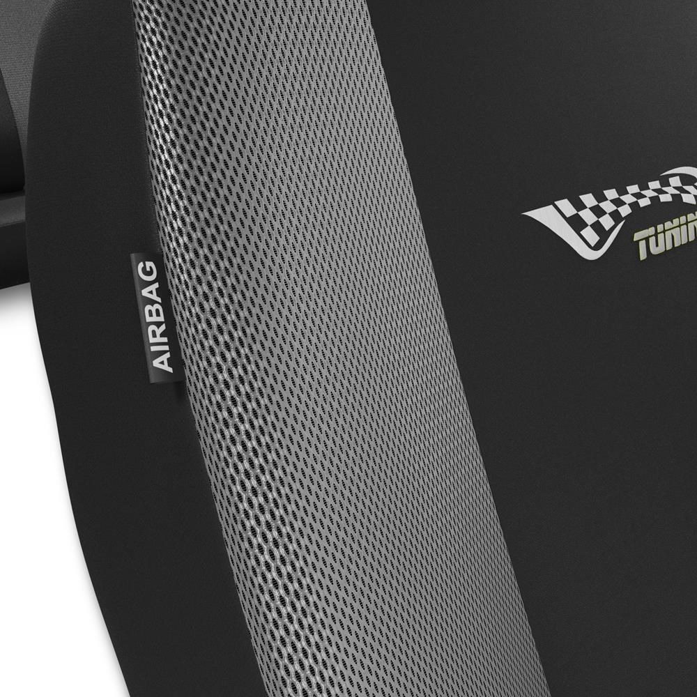 - Husele acoperă complet scaunele și, datorită cusăturilor certificate AIRBAG, nu interferează cu airbagurile.