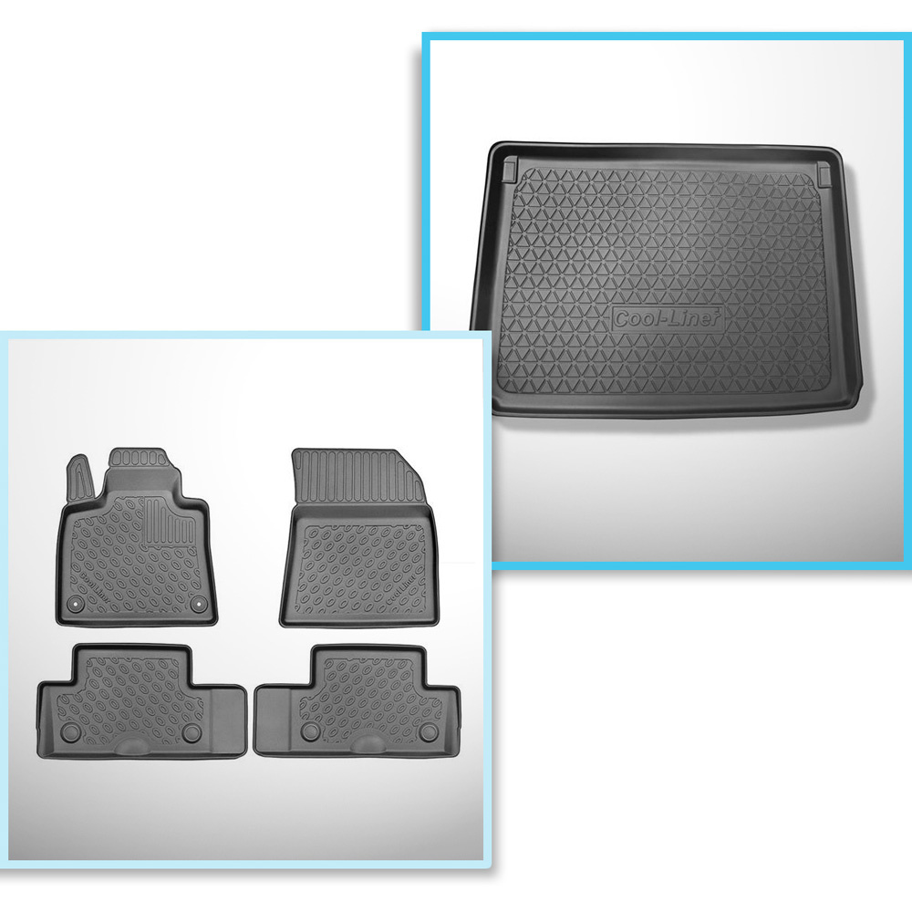 Set cu tăvița pentru portbagaj și covorașe auto TPE pentru: Citroen C4 SpaceTourer Dubita (07.2013-11.2020) - 5 locuri; portbagaj superior (podea plată a portbagajului); fără rândul III